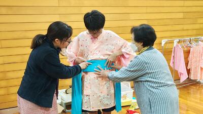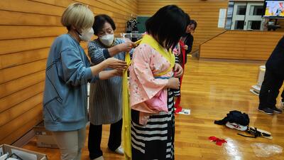 10月12日、救沢念仏剣舞保存会の内村洋子さんと太田昭子さんを講師に迎え、小川中PTA家庭教育セミナー(着付け教室)を実施しました。