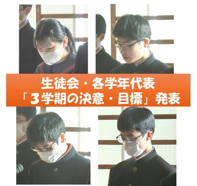 始業式では、生徒会・各学年の代表が「3学期の決意・目標」を発表しました。